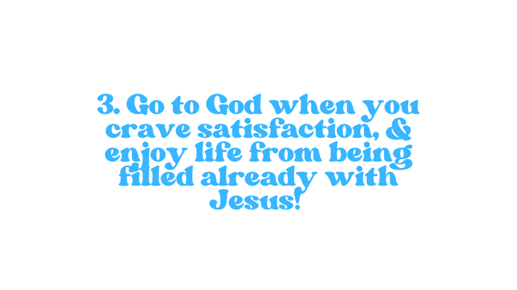 Remember my story of wanting to buy clothes instead of going to God first? Isaiah 55 promises that God will freely feed your spirit. Jesus describes Himself as the living water, going to God whether that be in your room, at the beach, at church or wherever you want and wait on His spirit. Read His word and when you don’t feel it - receive it by faith. Enjoy life and relationships from a place of being filled to the brim with Jesus. I remember when I became a Christian, life went from black and white to bright colours. There was purpose everywhere I turned, all thanks to Jesus filling my heart!