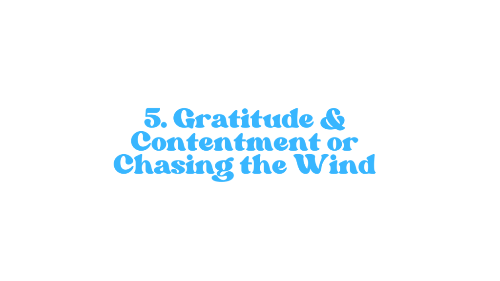 So what happens when we pursue created things of the world more wholeheartedly than we pursue our relationship with God? Solomon’s reflections from his life led him to the conclusion that chasing after these things is as productive as chasing after the wind, and that true satisfaction is found only in one true God.